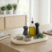 Detta stilrena fat i marmor kombinerar form och funktion på ett elegant sätt. Den neutrala färgtonen och den tidlösa designen gör att brickan smälter in i en skandinavisk inredning – oavsett om du använder den i köket, badrummet eller på soffbordet. Perfekt för att samla och organisera dina favoriter på köksbänken, till exempel oljor, kryddor, vinäger och annat du vill ha lättillgängligt men samtidigt snyggt presenterat. Den passar även utmärkt som bas för doftljus, tvålpumpar eller andra småsaker du vill hålla samlade och ordnade.
