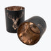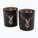 Stiliga värmeljushållare med en kopparfärgad insida och svart utsida med ett dekorativt hjortmönster. Du får ett vackert och mysigt sken när du har tända värmeljus i dessa. Balmoral värmeljushållare är fina för sig själva eller tillsammans med övriga produkter på ett dekorationsfat.