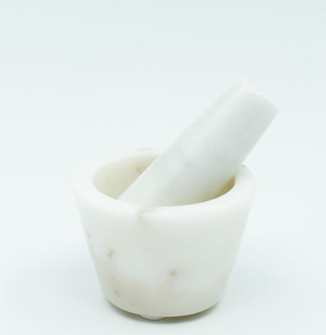 Vit marmor morter med støter