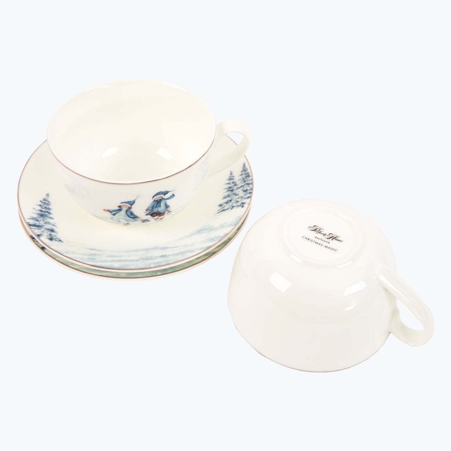 Duka ett bord fyllt med julens magi! Vackra Christmas Magic servis är producerad i högkvalitetsporslin. Servisen har en stämningsfull dekor med glada barn som dansar genom vinterlandskapet, redo för julens magiska ögonblick. Servisen kan diskas i diskmaskin, men den dekorativa platinakanten bevaras allra bäst genom att handdiska.