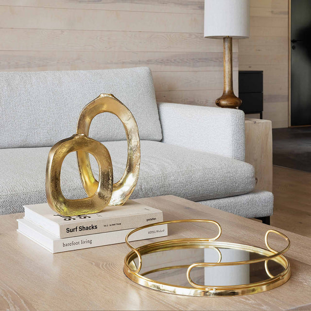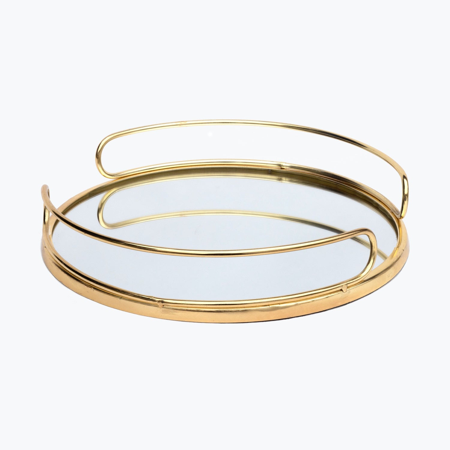 Skapa en trevlig stämning med vår eleganta ljusbricka i järn med guldfinish. Brickan har en botten av spegelglas som reflekterar ljuset på ett vackert sätt. H7,5 Ø35,5 cm. Torka av med en torr trasa. OBS: Det rekommenderas att inte använda mikrofibertrasa då detta kan orsaka repor på ytan. Spegelytan kan rengöras med fönsterputsmedel
