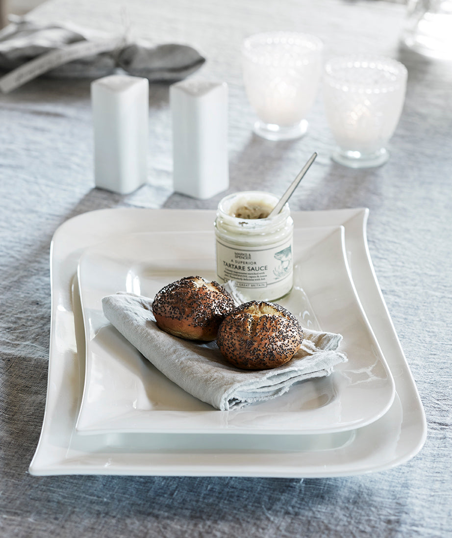 Vit Lilja är vårt signaturservis, känt för sitt stilrena uttryck och sin höga kvalitet. De kvadratiska formerna och den rena, vita färgen gör att servisen passar lika bra till en avslappnad frukost som till en festligt dukad middag. Det är slitstarkt, mångsidigt och tidlöst – och kan gärna mixas med andra serier.