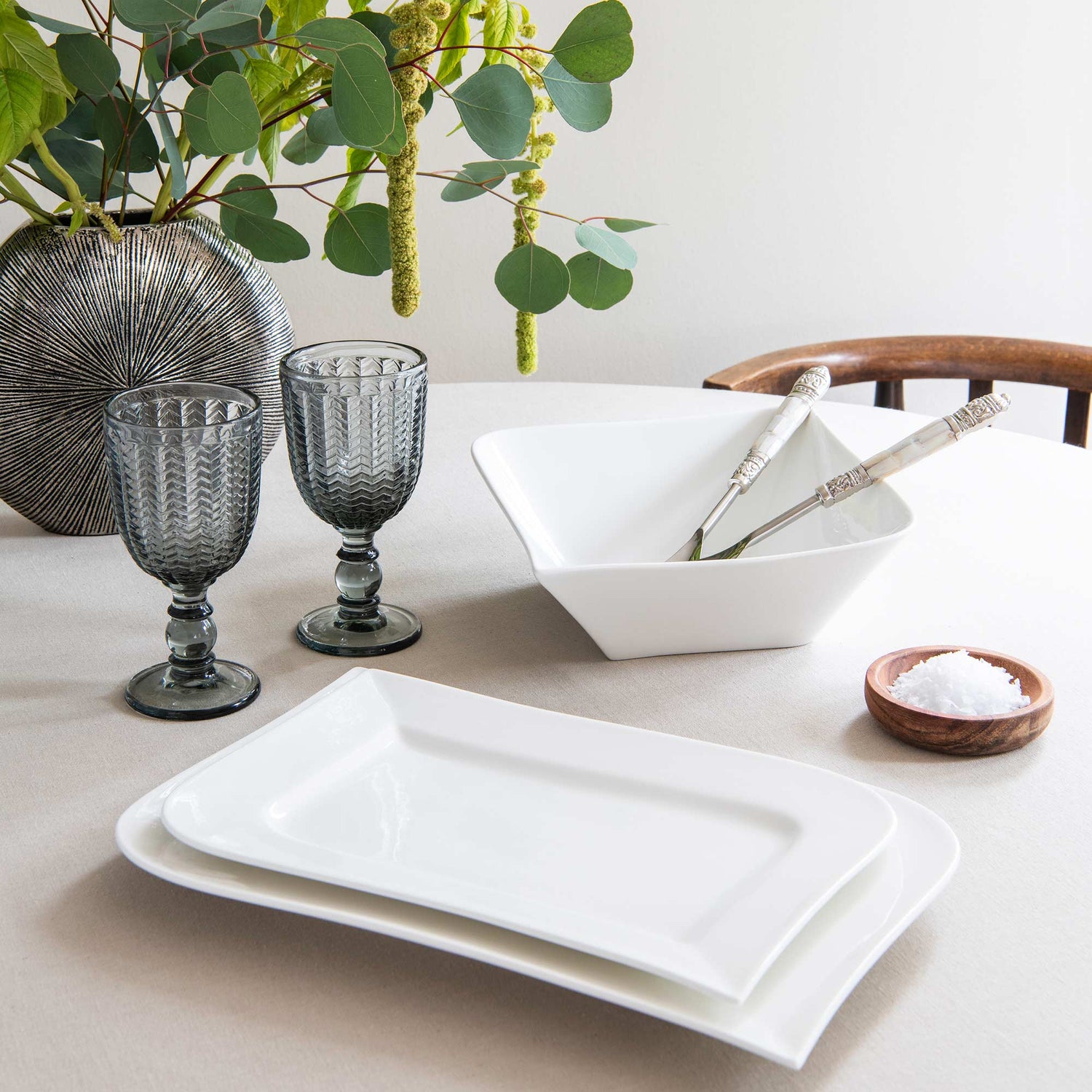 Setet består av två serveringsfat i olika storlekar, idealiska för både varma och kalla rätter. Faten passar perfekt till allt från middagsservering och tapas till kakor och frukt.