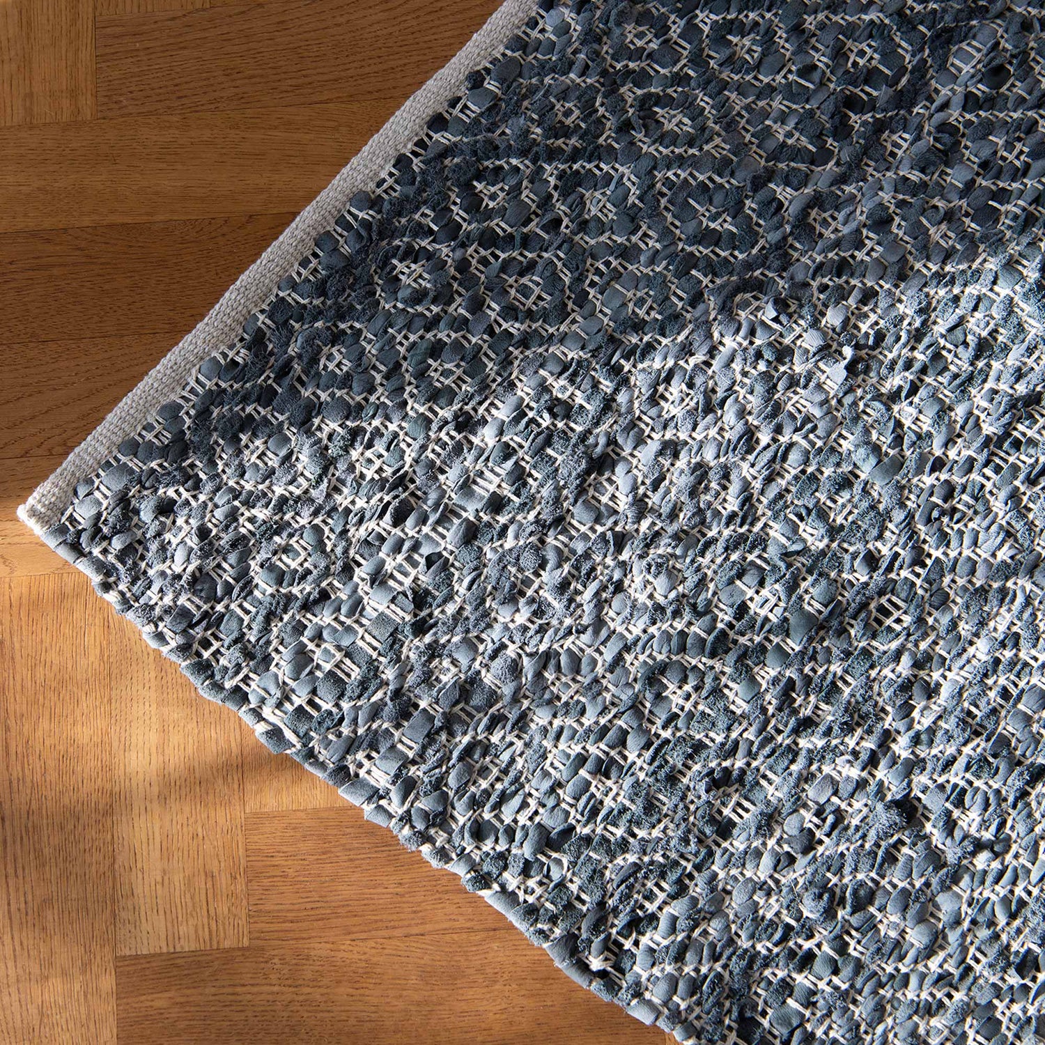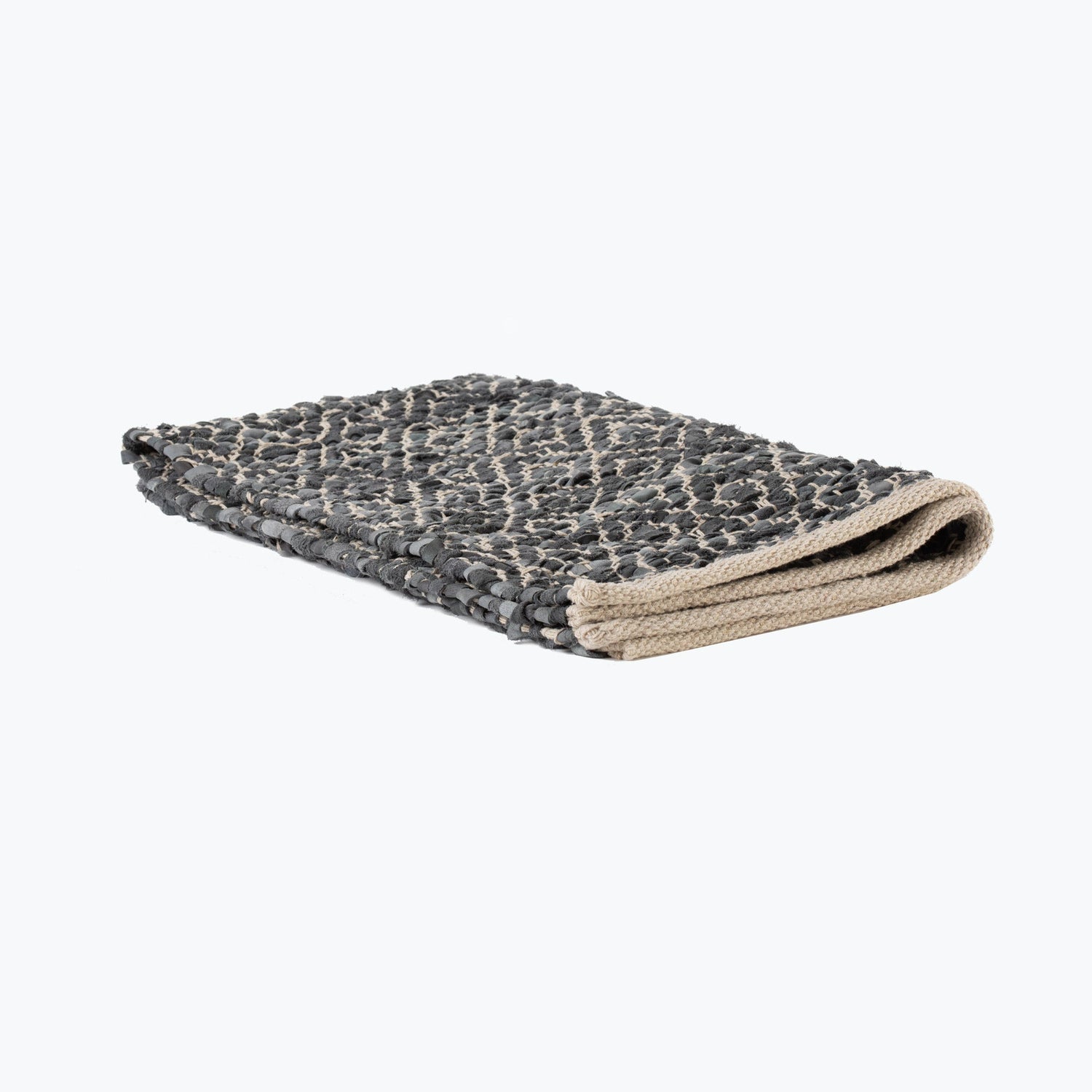 Snygg matta tillverkad av 90% återvunnet läder från väsk- och skoproduktion och 10% bomull. Mattan är handgjord och har ett vackert diamantmönster. Variationer i vilka råvaror som används gör varje produkt unikt. Mattan är mjuk och skön och ligger stabilt på golvet. Indira-mattan passar bra i hallen, på badrummet eller vid sängen i sovrummet. Välj mellan grå eller brun matta.