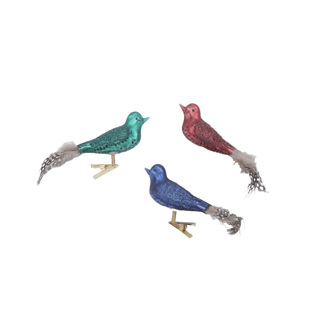Dessa söta små fåglar med klämma är perfekta för att sätta en personlig och lekfull touch på juldekorationen. Fäst dem enkelt i granen, i en krans, på ett paket eller som en mysig detalj i dukningen. Fåglarna säljs i 3-pack med blandade färger: vinröd, grön och blå – lagom olika, men underbara tillsammans. En liten dekoration som skapar stor stämning!