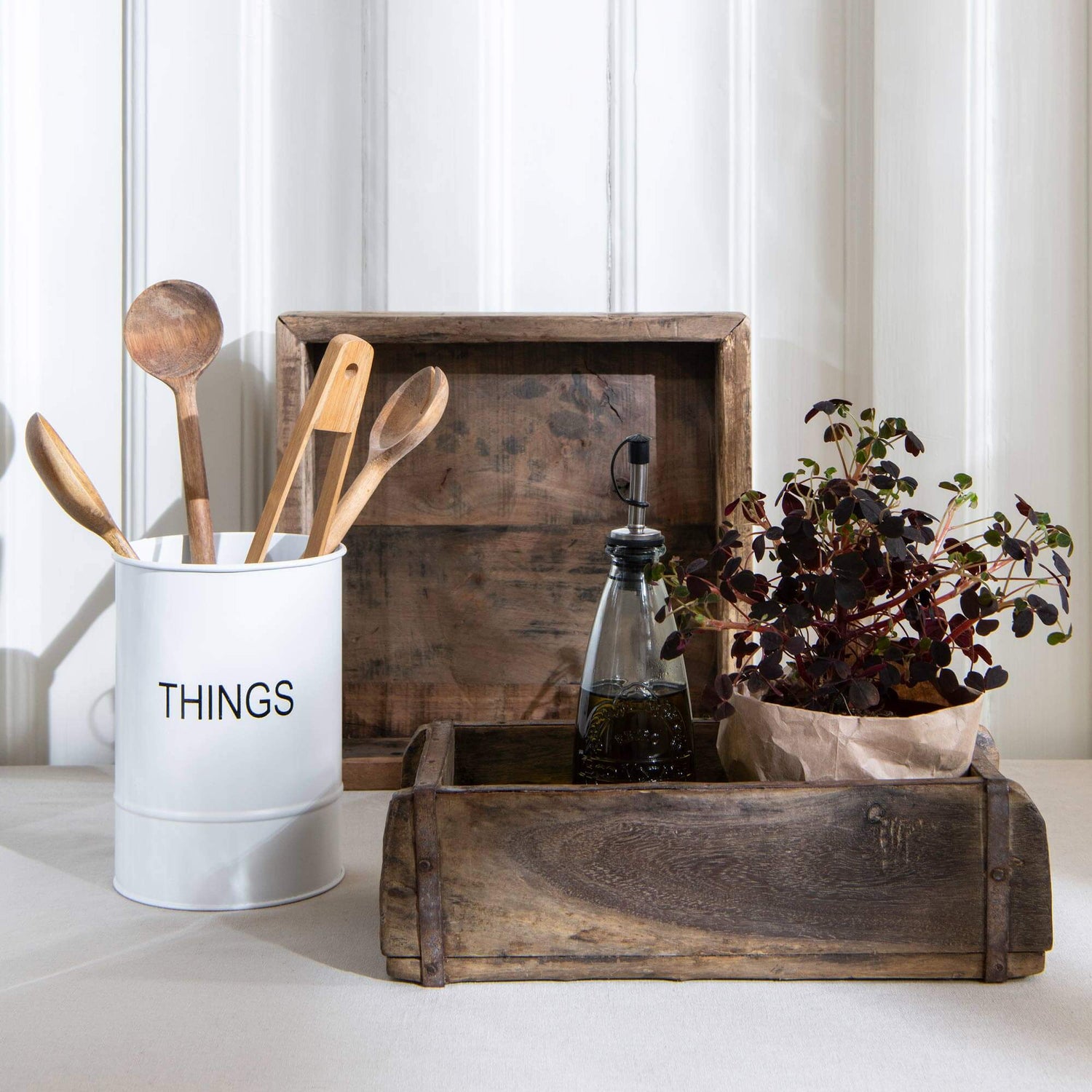 Snygg förvaringslåda tillverkad av återvunnet trä. Lådan kan användas i alla rum i huset, på badrummet för tvålar och krämer, i köket för örter, oljor, ketchup- och senapsflaskor, i vardagsrummet för blommor (i en tät behållare), på sovrummet för håraccessoarer eller smycken. Kul fakta: denna låda var ursprungligen en gjutform för tegelstenar.