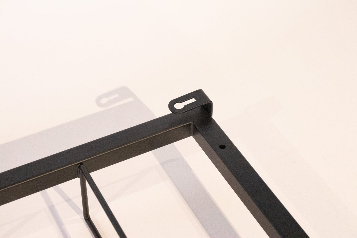 Med sin tidlösa design passar denna vinhylla perfekt in i varje modernt interiör. Gjord för att monteras på väggen, frigör den värdefull golvyta samtidigt som den ger ett imponerande blickfång. Hyllan är gjord av järn och rymmer 9 vinflaskor. Mått 100x34x7 cm.