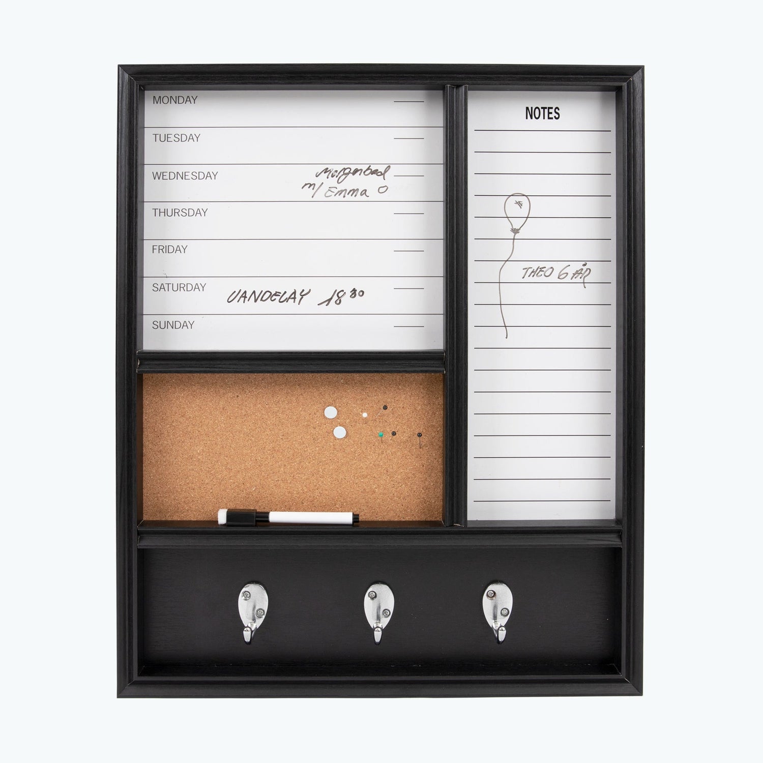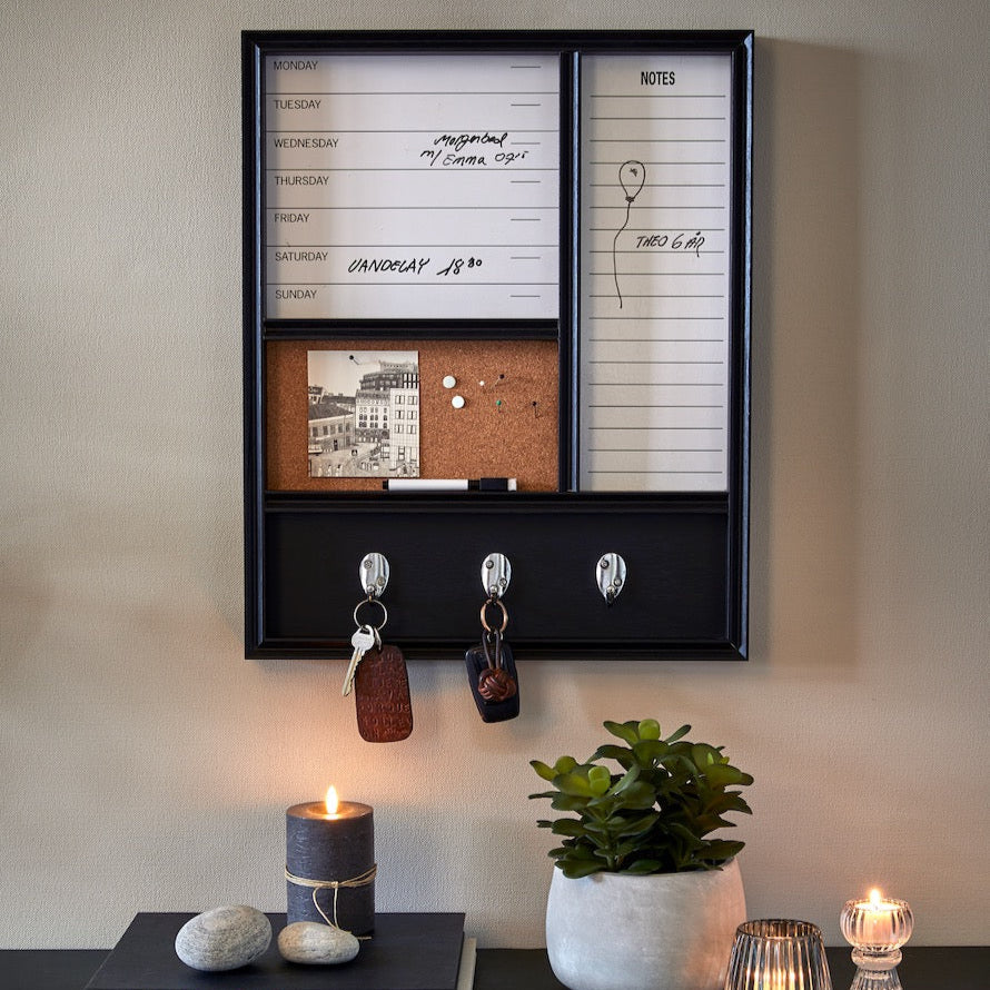 Håll koll med denna superpraktiska och dekorativa veckotavla. Weekly veckotavla har whiteboard och korktavla i tillägg till krokar. Veckotavlan passar i hallen, i köket, eller i barn- eller ungdomsrummet. Tidigare pris 999 kr